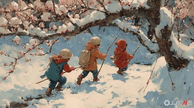 梅花欢喜漫天雪,小孩子也喜欢雪。冬天,无论细小的雪霰,还是“大如席”的厚雪,听到积雪在脚下发出的声音,这种铺天盖地的洁白和“吱吱嘎嘎”的天籁是大自然送给北方孩子的专属礼物。