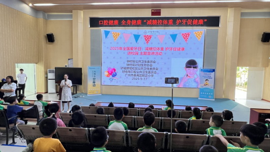 9月17日,在第37个“全国爱牙日”来临之际,钟村街公共卫生委员会以“口腔健康 全身健康”为主题,围绕“减糖控体重 护牙促健康”宣传重点,走进番禺区毓正小学开展健康宣讲进校园活动。本次活动由好佰年口腔公共卫生委员会、祈福新邨社区公共卫生委员会、钟村街计划生育协会工作人员化身“护牙卫士”,通过专业检查、趣味科普等形式,为261名学生送上全方位口腔健康关爱服务。